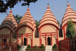 The temple was panchoratno, at its front Natamandir and around it there is a row of rooms and a big pond and nahobottola gate through which elephant used to go. At its east there are tombs of some saints who used to pray or meditate at the temple. Outside the temple there are 5–6 pagoda with a shiblinga. The priest of Dhakeshawri temple used pray every day. The deity is doshvuja. It is believed that it is made of gold. At the left and right side of the deity there are some other murti. Like the ancient temples its inside is dark. To see the deity light is to be arranged. The temple is owned by many because it is bought by the new caretaker from the old caretakers. Jotindramohan bought it in 1901. Dhakeshawri is crowded but it is an abode of peace. The low sound of the tongue mixes with the evening light and tune of temple bell and make the peaceful environment a happy event.