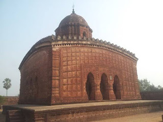 Another excellent terracotta exhibit in the temple town of Bishnupur. The Madan Mohan Mandir was built in 1694 CE by the Mallabhum king Durjan Singha for the Mallabhum dynasty deity Radha & Krishna. This is a single dome or eka-ratna temple with a square roof, curved cornices and a pinnacle over the top.