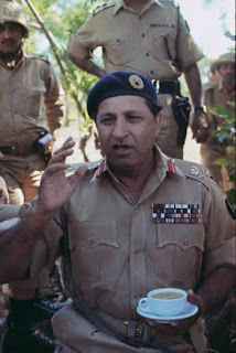 War Criminal and mass murderer General A.A.K. Niazi of the Pakistan Army photographed drinking tea just before his surrender in December, 1971. After a woeful pitiful defeat at the hands of the Indian Army and the MuktiBahini, Niazi was taken in to prison by the Indian army, after which he and his countrymen begged and cried for him to be released.